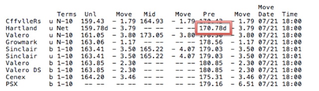 Tanya: Quality control occurs between 5:30 a.m. and 11:00 p.m. Eastern Time. Our system flags any prices that may be errors or outliers and need extra scrutiny by our analysts. When a price is deemed to not fit into our criteria, it is not included in any OPIS averages until it’s vetted. The price will still be displayed in the report, but will be noted with a little “d” to indicate it is not part of the OPIS benchmark data.